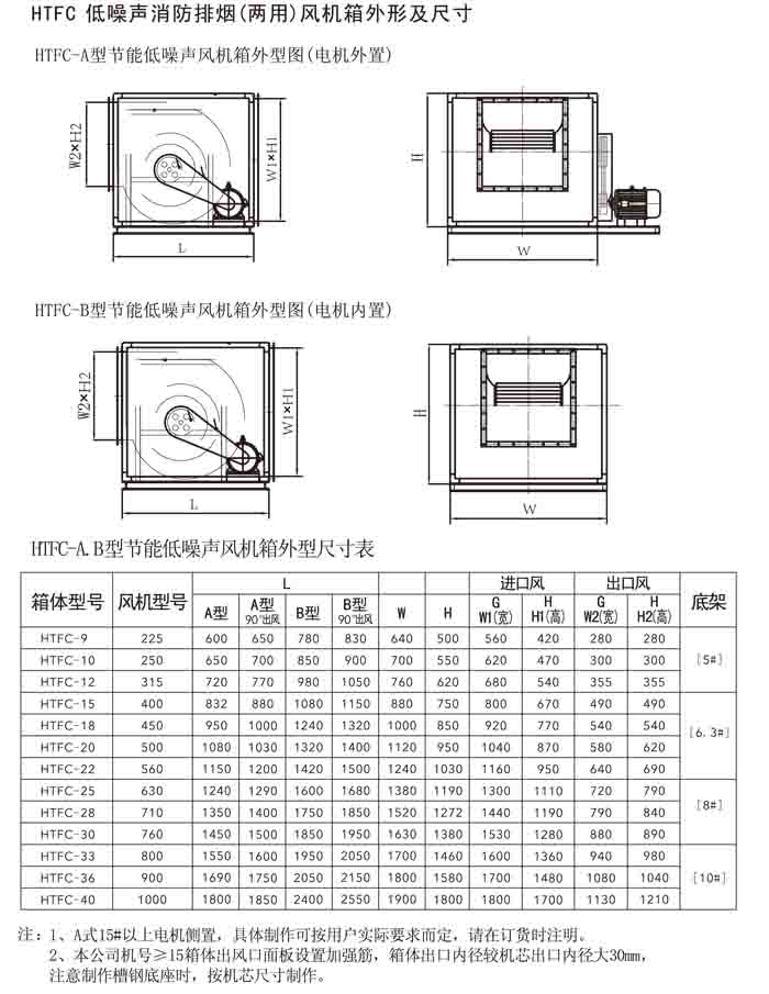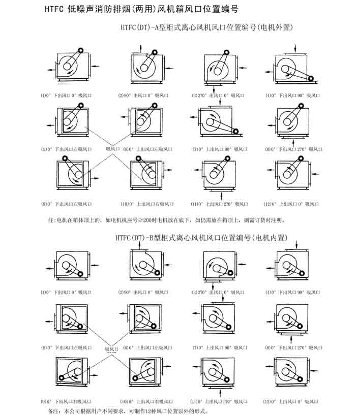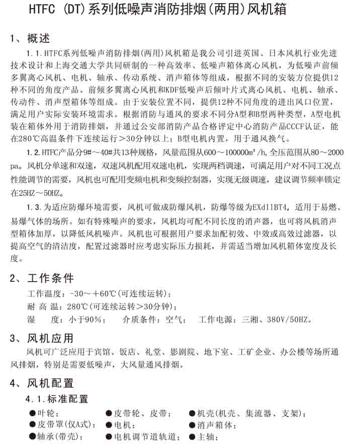 一、HTFC(DT)-I、II、V 系列低噪聲消防排煙(兩用)風(fēng)機箱