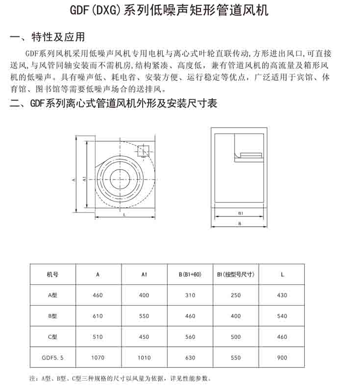 三、GDF 系列低噪聲離心管道風(fēng)機