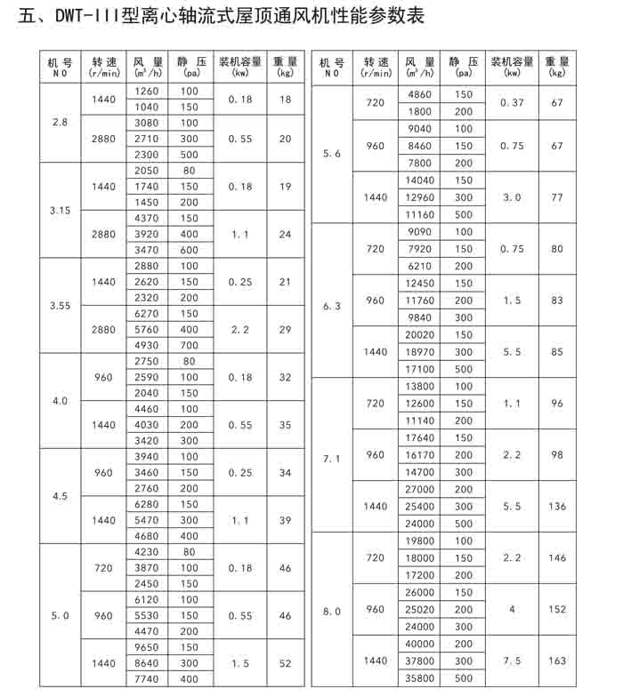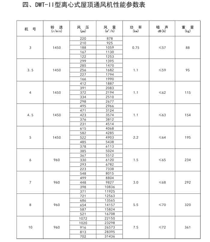 二、DWT-II、III 系列離心式屋頂風(fēng)機(jī)