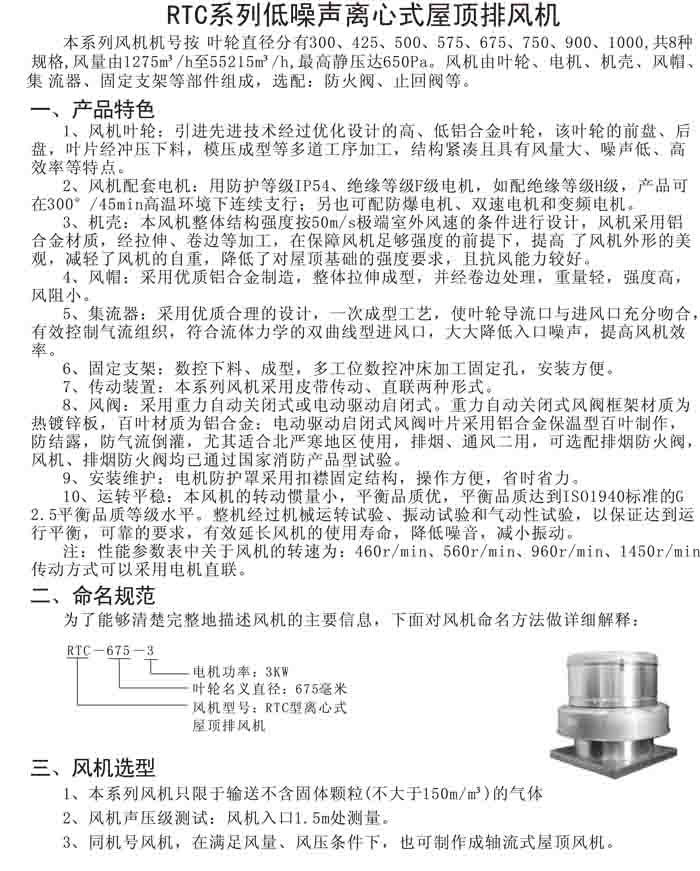 四、RTC 系列鋁制離心式屋頂風(fēng)機