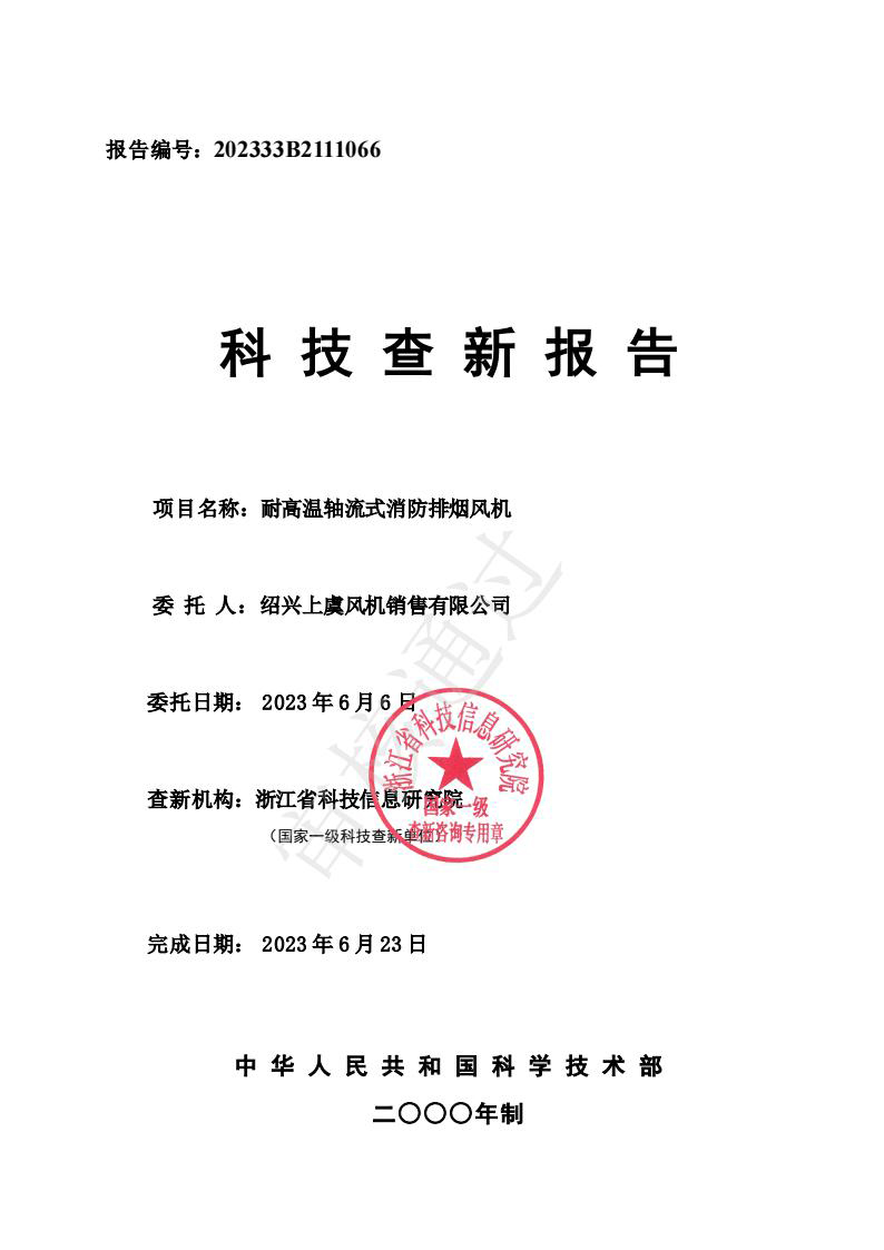科技查新報告(耐高溫消防排煙風(fēng)機) |