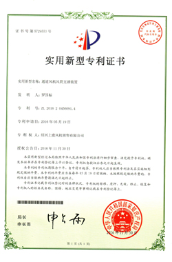 | 通道風(fēng)機風(fēng)筒支撐裝置專利證書 |