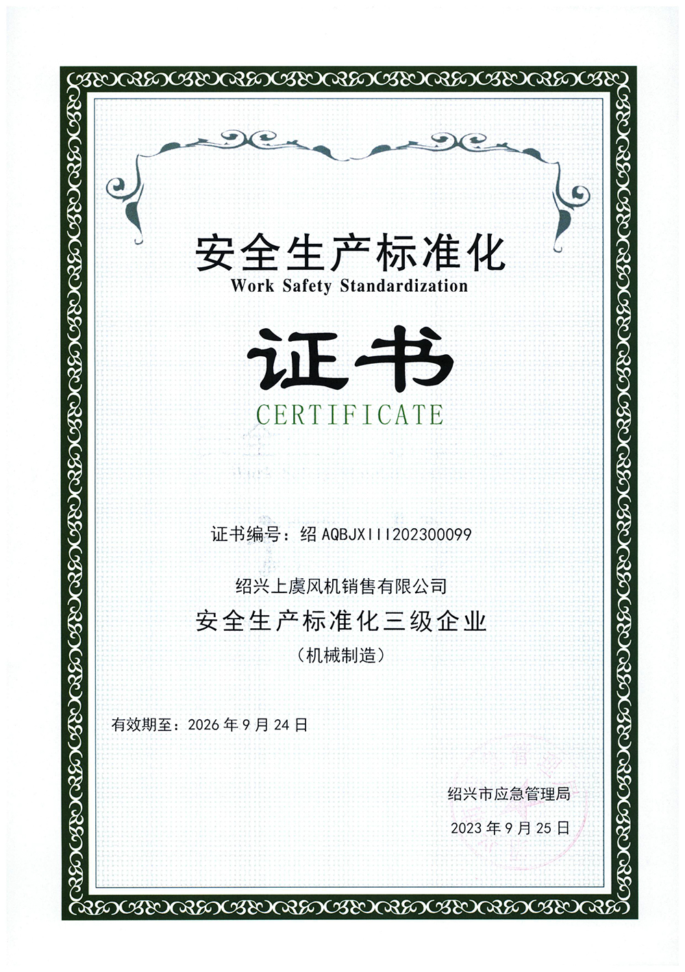 安全生產(chǎn)標準化證書 |