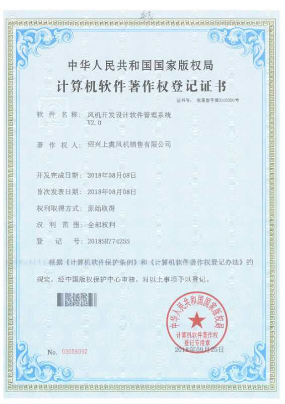 離心風(fēng)機專利證書 |