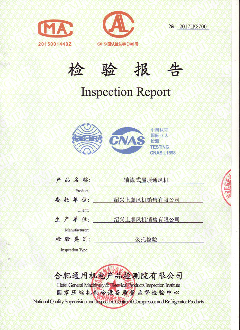 生產(chǎn)許可證檢驗報告低噪聲屋頂風(fēng)機