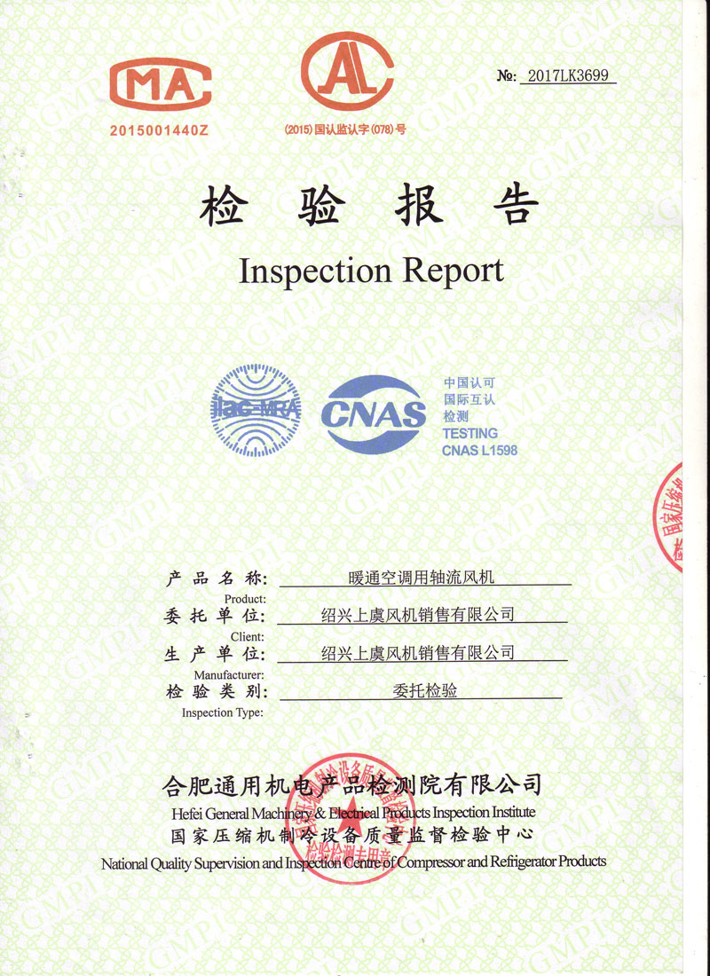 生產(chǎn)許可證檢驗報告低噪聲軸流風(fēng)機